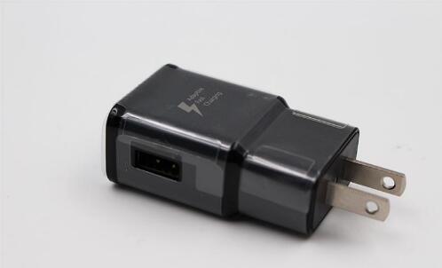 三星note8充電器整體外形與上幾代沒有太大變化。正個(gè)機(jī)身為黑色,AC端插腳為美規(guī)標(biāo)準(zhǔn),USB-A輸出端在充電器一側(cè)。