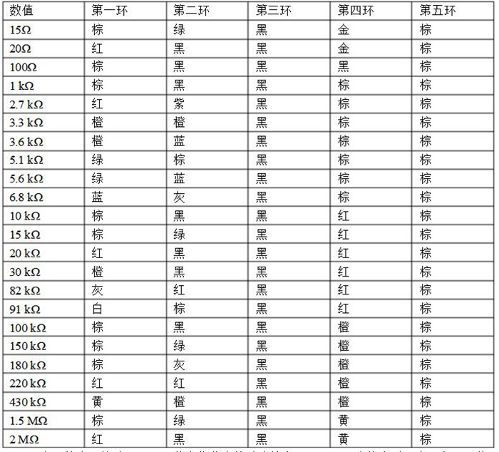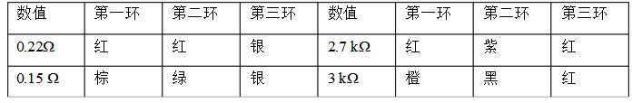技巧2:棕色環(huán)是否是誤差標志的判別。棕色環(huán)既常用做誤差環(huán),又常作為有效數(shù)字環(huán),且常常在第一環(huán)和最末一環(huán)中同時出現(xiàn),使人很難識別誰是第一環(huán)。在實踐中,可以按照色環(huán)之間的間隔加以判別:比如對于一個五道色環(huán)的電阻而言,第五環(huán)和第四環(huán)之間的間隔比第一環(huán)和第二環(huán)之間的間隔要寬一些,據(jù)此可判定色環(huán)的排列順序。