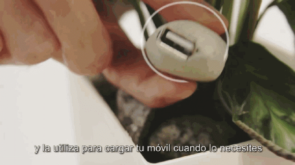 Bioo一天能充電兩到三次,電壓3.5V,電流0.5A。充電用的USB接口很巧妙地偽裝成了石頭的形狀。Bioo花盆利用有機材料與水和植物光合作用時產(chǎn)生的有機物反應(yīng),這一過程可以產(chǎn)生足夠的電量為設(shè)備充電。