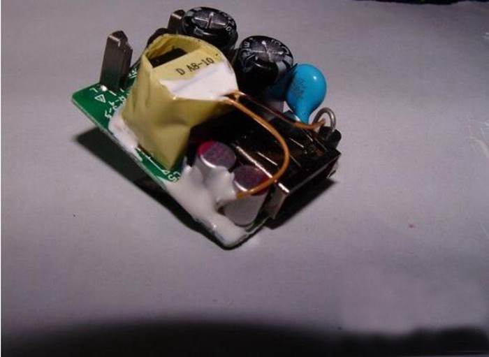 這個(gè)充電器做工是過(guò)關(guān)了,用料還行 但是設(shè)計(jì)上有缺陷,在某些地方市電不干凈的情況下,給手機(jī)充電會(huì)造成手機(jī)屏幕的漂移和失靈,所以我只拿它給移動(dòng)電源充電。這款充電器的原件排的比較密集,這次拆它主要是為了加膠,針腳之間都挨得很近,加點(diǎn)703膠保險(xiǎn)一些。