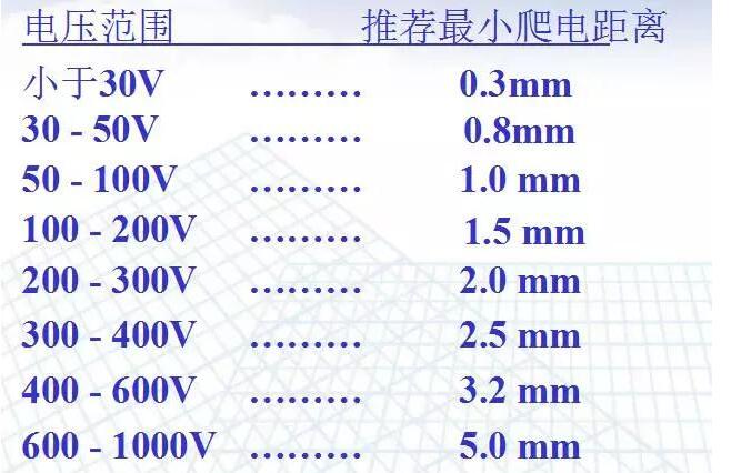 (1)、爬電距離:輸入電壓50V-250V時,保險絲前L—N≥2.5mm,輸入電壓250V-500V時,保險絲前L—N≥5.0mm;電氣間隙:輸入電壓50V-250V時,保險絲前L—N≥1.7mm, 輸入電壓250V-500V時,保險絲前L—N≥3.0mm;保險絲之后可不做要求,但盡量保持一定距離以避免短路損壞電源。