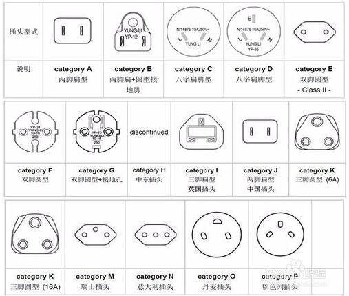 國(guó)標(biāo)插頭:中國(guó)、澳大利亞、新西蘭、阿根廷使用,特征是三個(gè)扁頭。